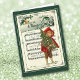 Here's a beautiful Christmas card made from a vintage art card of a Victorian era child dressed in a red cape and brown knickers carrying a Holiday tree. The image is placed in front of the words and music to "Away in A Manger". The image has been cleaned up and placed on a dark green background. It's fun to celebrate the Holidays the old fashioned way! The inside left of this card is matching green, while the right side holds your easy to customize message and signature.