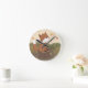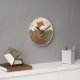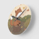 A cute illustration of a fox drinking coffee under the colorful falling leaves in Autumn