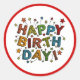 A Colourful Happy Birthday Typography Sticker For Mailings Or Party Favour Bags.