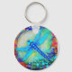 Beautiful glowing blue dragonfly sailing over blue waters and sunlight.