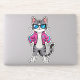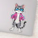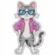 A stylish cartoon cat strikes a confident pose in a neon-lit, retro arcade world. Rocking a hot-pink bomber jacket and cool blue shades, this feline is the embodiment of 80s nostalgia and futuristic flair. With pixel shapes and neon beams glowing in the background, the cat radiates pure confidence and playful swagger.