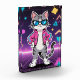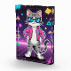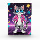 A stylish cartoon cat strikes a confident pose in a neon-lit, retro arcade world. Rocking a hot-pink bomber jacket and cool blue shades, this feline is the embodiment of 80s nostalgia and futuristic flair. With pixel shapes and neon beams glowing in the background, the cat radiates pure confidence and playful swagger.