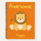 This notebook features an orange background with a lovely lion. At the topic is features "Awesome" written in fun yellow font. At the bottom is your name. Personalize yours today!