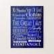 Awesome names of God design featuring: El Shaddai, Son of God, Wonderful Counsellor, Elohim, Comforter, The Great I Am, Alpha and Omega, Almighty, Jehova, Redeemer, Master, Paraclete, Shepherd, The Rock, Lord, Saviour, Messiah and Emmanuel in a beautifully typeset layout on a bold, royal blue background.