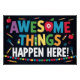 Brighten up your classroom with this fun and energetic "Awesome Things Happen Here" poster! Featuring colourful, bold text alongside school supplies like scissors, crayons, and apples, this design brings a positive and welcoming atmosphere to any learning environment. Perfect for inspiring students to embrace their creativity and potential, this poster makes a great addition to classrooms, art rooms, or any space where students gather.