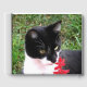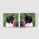 Fantastic cat photograph - black and white tuxedo cat against bright green summer grass and vibrant red flowers. Add information in spine for your event and date