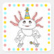 Cute axolotl themed Birthday stickers. Pink, yellow and blue polka dots and an axolotl wearing a birthday hat girl's birthday stickers.