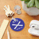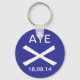 A keyring for supporters of Scottish independence from the UK Westminster government. The design features a stylized St Andrew's cross as seen on the Scottish flag, also known as the saltire, with the word, 'Aye,' which is Scots for Yes, and the date of the referendum on independence for Scotland, 18.09.14.