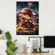 Satisfy your Ayers Rock-sized appetite with this delicious Outback Burger. A thick kangaroo beef patty, grilled to juicy perfection, is topped with a fried egg, vibrant beetroot slices, crispy bacon, and a generous smear of smoky barbecue sauce, all stacked high on a toasted damper roll. A small Australian flag adds a touch of Outback charm, while a backdrop of the Sydney skyline completes this Australian culinary experience