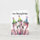 Cette carte d'anniversaire comporte un portrait aquarelle de trois flamants roses avec la légende "Ayez un Flamazing Birthday!".