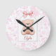 Ayla | Custom Pink Teddy Bear Nursery Design Round Clock