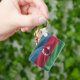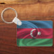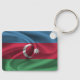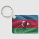 Keychain with the flag of Azerbaijan in wavy fabric style design. This design features the Azerbaijani flag colours and design with a beautiful waving material textured effect. This flag design is a great way to show you are proud to be from Azerbaijan.