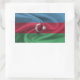 Sticker with the flag of Azerbaijan in wavy fabric style design. This design features the Azerbaijani flag colours and design with a beautiful waving material textured effect. This flag design is a great way to show you are proud to be from Azerbaijan.