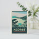 A great gift for all Azores lovers ideal to offer or to send to a friend, nice retro original illustration postcard with a view of lagoon of 7 cities, Azores Portugal
