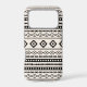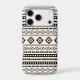 Aztec influenced mixed motifs pattern in black detail on a cream color background.