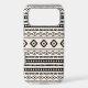 Aztec influenced mixed motifs pattern in black detail on a cream color background.