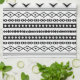 Aztec mixed motifs pattern in black detail on a white background design. V = Vertical pattern.