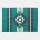 Aztec ethnic bohemian pattern with geometrical shapes in white, beige and turquoise colours on striped background