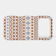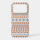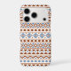 An Aztec style design in a digital and vector pattern with rust/terracotta color and blue detail on a cream background.