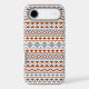 An Aztec style design in a digital and vector pattern with rust/terracotta color and blue detail on a cream background.