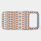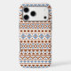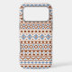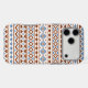 An Aztec style design in a digital and vector pattern with rust/terracotta color and blue detail on a cream background.