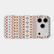 An Aztec style design in a digital and vector pattern with rust/terracotta color and blue detail on a cream background.