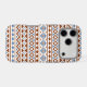 An Aztec style design in a digital and vector pattern with rust/terracotta color and blue detail on a cream background.