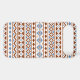 An Aztec style design in a digital and vector pattern with rust/terracotta color and blue detail on a cream background.