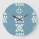 Aztec Ethnic: Blue Geometric Seamless. Large Clock