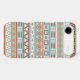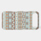 An Aztec influenced style of design in a digital and vector pattern in blue, cream and terracotta colors.