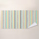 Towel set with faux glitter gold, aqua blue, white, black and peachy pink geometric pattern.