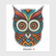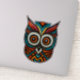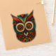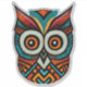This is a decorative owl made by hand and stylized with Aztec patterns in black, red, turquoise and orange colours.