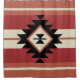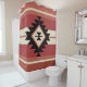 Aztec ethnic bohemian pattern with geometrical shapes in red, orange, grey and black colours on striped background