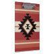 Aztec ethnic bohemian pattern with geometrical shapes in red, orange, grey and black colours on striped background