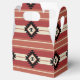 Aztec ethnic bohemian pattern with geometrical shapes in red, orange, grey and black colours on striped background