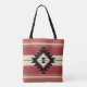 Aztec ethnic bohemian pattern with geometrical shapes in red, orange, grey and black colours on striped background