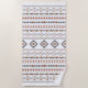 Aztec influenced mixed motifs pattern in red and grey details on a white background.