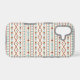 Aztec influenced shapes and line pattern in rust/terracotta color teal color detail on a cream color background.