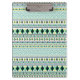 Aztec Style Tribal Pattern White Blue Green Clipboard