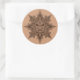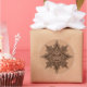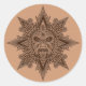 This Aztec inspired sun design has eight intricate rays that stretch out from the centre of the pattern. The menacing mask at the centre of the design has its eyes locked forward and tongue stretched out of its tooth filled mouth. Two-headed serpents sit inside of stylized rectangles on the four corners of the outer circle. This aggressive design is a striking homage to the beauty and mystery of Aztec art.