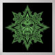 This Aztec inspired sun design has eight intricate rays that stretch out from the centre of the pattern. The menacing mask at the centre of the design has its eyes locked forward and tongue stretched out of its tooth filled mouth. Two-headed serpents sit inside of stylized rectangles on the four corners of the outer circle. This aggressive design is a striking homage to the beauty and mystery of Aztec art.