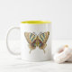 The wings, body, and antennae of a swallowtail butterfly are decorated with patterns found in sculptures and codexes left by and about the Aztec or Mexica. Bright whites, yellows, blues, and reds balanced by browns and blacks paint the geometric shapes and repeating motifs.