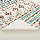Aztec mixed motifs and patterned design in teal, terracotta colour, black and cream colour.