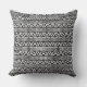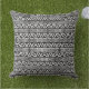 Aztec Triangles+Squares Pattern White on Black Outdoor Pillow