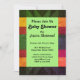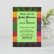 Baby shower Invitation. Colourful with blue, green, dark pink, and orange on this retro 70's style invite. Let's go tribal with this Aztec abstract design on the front and back of this flat card. The pattern is in shades of blue, purple, and light brown or tan. Replace the information with your own. All customization is available for the front and back of the card.