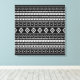 Aztec White on Black Mixed Motifs Pattern Canvas Print