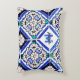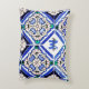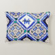 Azulejo Spanish Pattern Tiles Navy White Monogram Accent Pillow