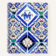 Azulejo Spanish Pattern Tiles Navy White Monogram Notebook