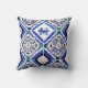 Azulejo Spanish Pattern Tiles Navy White Monogram Throw Pillow