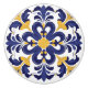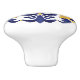 This ceramic knob features a bold floral motif in deep cobalt blue and rich golden yellow, inspired by azulejos—the traditional hand-painted glazed tiles of Portugal and Spain, treasured for their elegance and timeless beauty. The symmetrical design radiates from a golden flower at the centre, with sweeping petal-like flourishes and graceful curves that create a sense of movement and refinement. The crisp white background enhances the contrast, making the colours vivid and eye-catching.